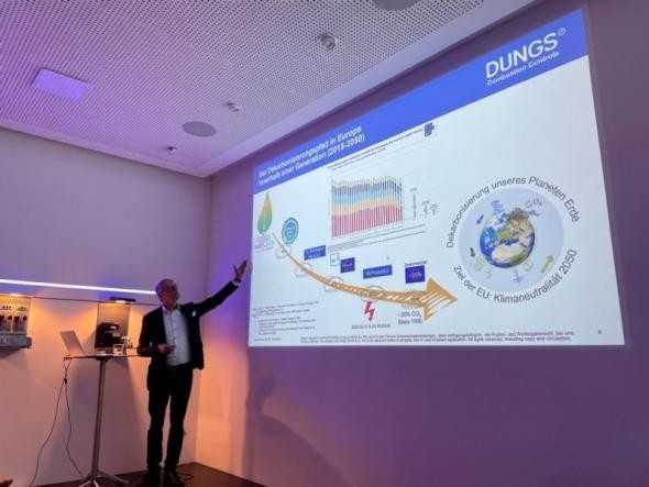 Das Thema Wasserstoff wurde im Vortrag von Karl Dungs in den Mittelpunkt gestellt. Er sieht ihn als Gas der Zukunft und als Bindeglied für nachhaltige Sektorkopplung von Strom, Wärme und Verkehr. Im Vortrag von Markus Heigele von der Firma Alois Müller (Technologiepartner für technische Gebäudeausrüstung) wurde die Vorstellung einer CO²-neutralen Fabrik zur Wirklichkeit. Mit Photovoltaikanlage, Blockheizkraftwerk, Holzpelletkessel, Wärmerückgewinnung über Abwärme aus Druckluft, Heizwasser-Pufferspeicher (power-to-heat), Stromspeicher und flexibilisierte Prozesse ist das Memminger Unternehmen für die Zukunft bestens aufgestellt. Die Firma Alois Müller berät und unterstützt Mittelständische Unternehmen auf dem Weg hin zur Klimaneutralität nicht nur, sondern setzt diese auch technisch vollumfänglich um.
