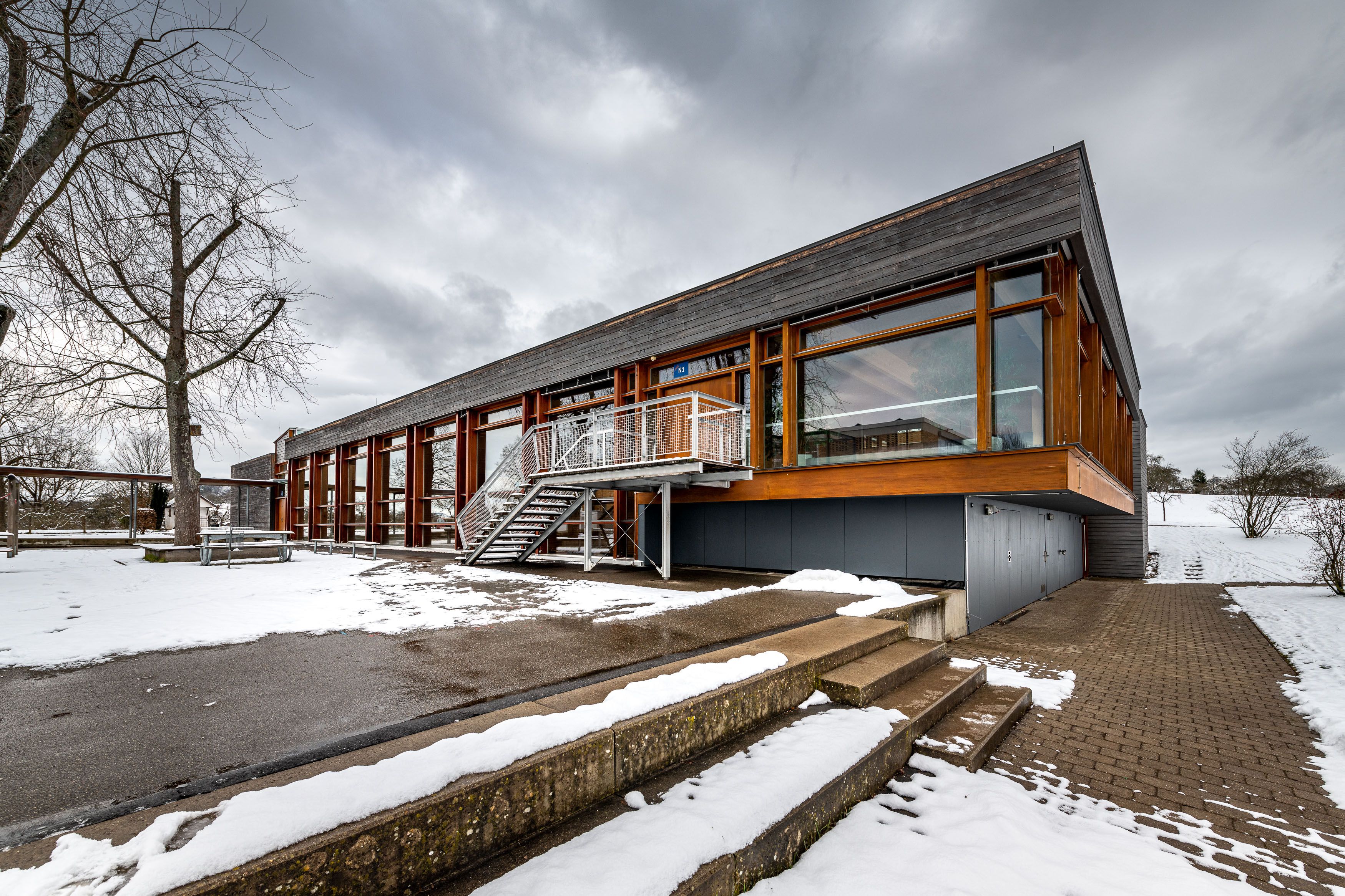Neben den Schulräumen ist die Schule mit einem Lehrschwimmbecken ausgestattet. Der Musiksaal wird auch außerschulisch genutzt (Volkshochschule, Jugendmusikschule, Vereine und Gruppen). Der Schulsportunterricht findet in der benachbarten Atriumhalle statt.