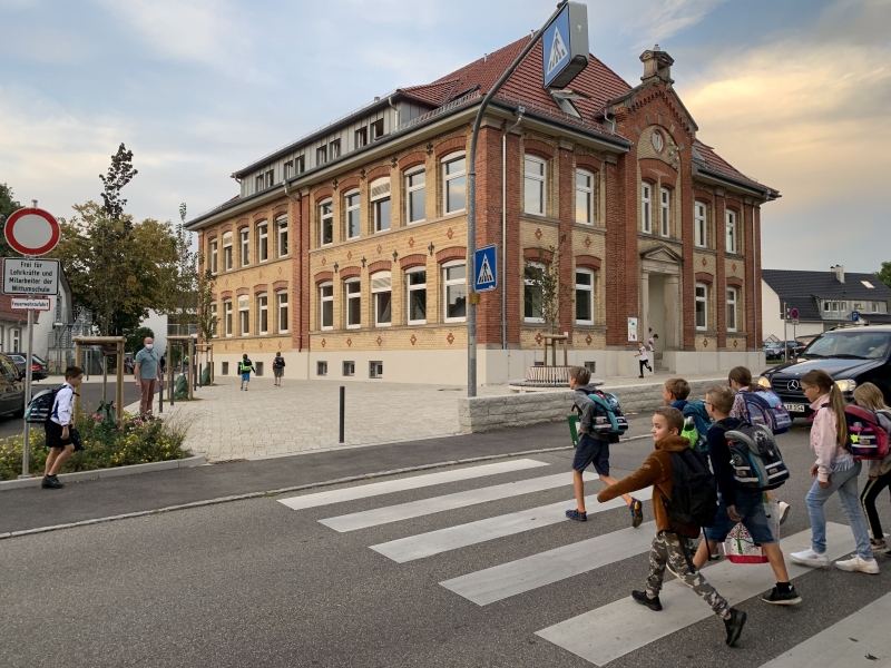 c) empf. Schulweg: Untere Seehalde – Burgstraße – Uferstraße bzw. Kelterhalde – Kelterweg – Hohenackerstraße – Beckengasse – Fußgängerüberweg über Haubersbronner Straße beim Gasthaus „Lamm“ – Kirchplatz – Kirchgasse – Fußgängerüberweg Wittumstraße – Wittumschule