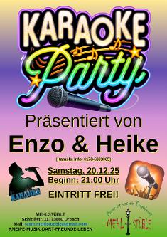 Die große Karaoke Nacht im Mehlstüble. Enzo & Heikepräsentieren ihre Karaoke Show zum Mitmachen und Spaß haben.