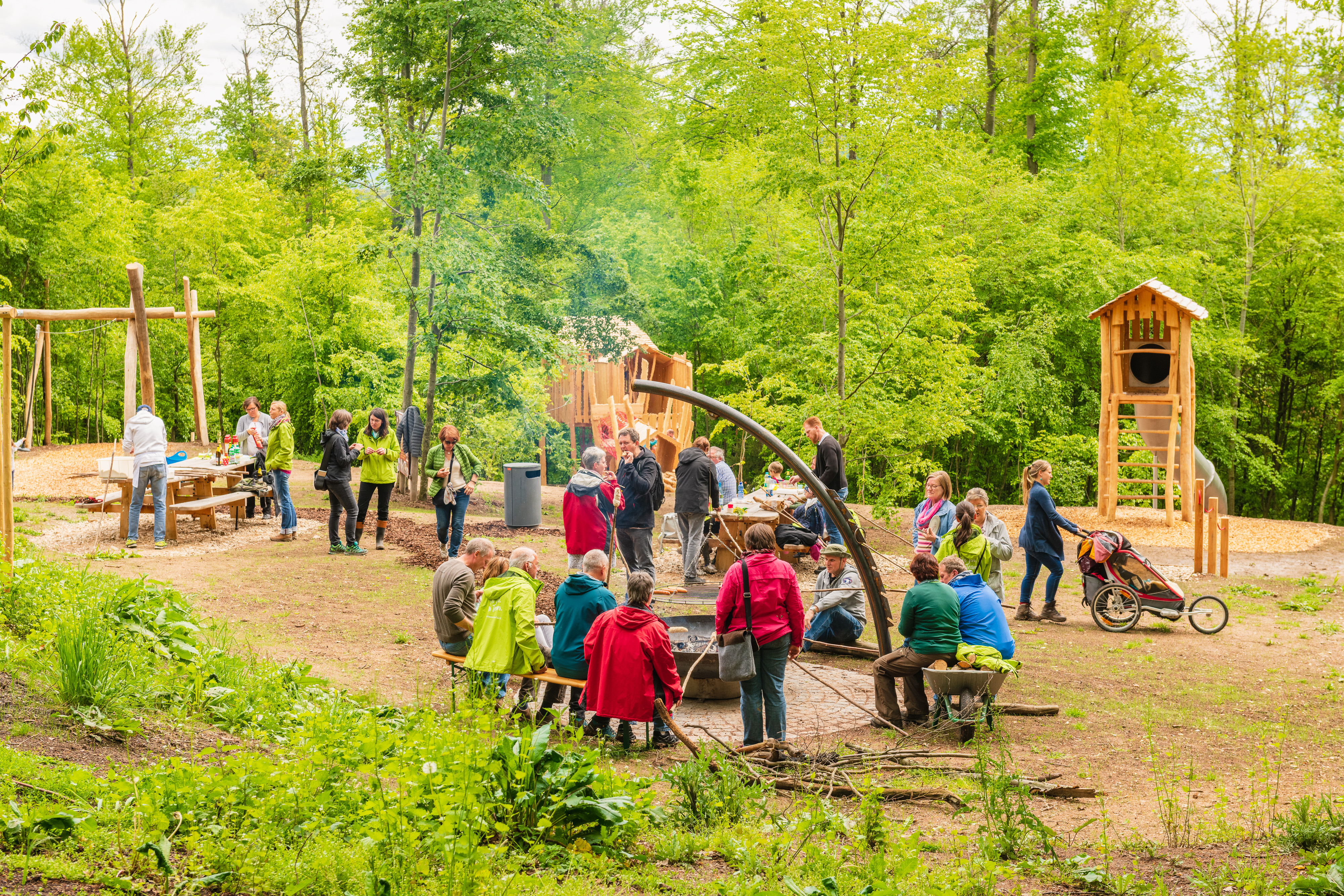 Zwischen Bergrutsch-Rundweg und Walderlebnispfad lädt der neue Waldspiel- und Grillplatz Groß und vor allem Klein zum Verweilen, Toben und für eine Pause ein. Ausgestattet mit Seilbahn, Waldsofa, Baum-Mikado, Spieltürmen und vielem mehr wird der Ort inmitten von Bäumen zu einem Abenteuerplatz. Eine Grillstelle und entspannte Sitzgelegenheiten machen den Waldspiel- und Grillplatz zu einem perfekten Ausgangs-, Pausen - oder Endpunkt für Aktivitäten rund um die Attraktionen an der Hagsteige.