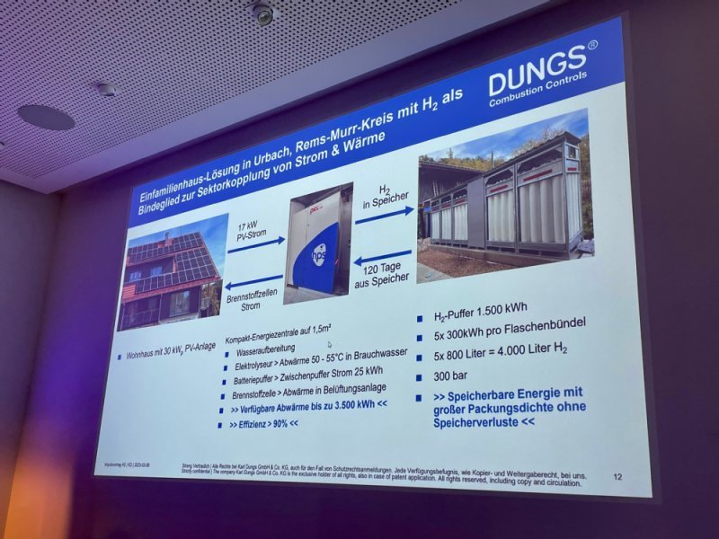 Das Thema Wasserstoff wurde im Vortrag von Karl Dungs in den Mittelpunkt gestellt. Er sieht ihn als Gas der Zukunft und als Bindeglied für nachhaltige Sektorkopplung von Strom, Wärme und Verkehr. Im Vortrag von Markus Heigele von der Firma Alois Müller (Technologiepartner für technische Gebäudeausrüstung) wurde die Vorstellung einer CO²-neutralen Fabrik zur Wirklichkeit. Mit Photovoltaikanlage, Blockheizkraftwerk, Holzpelletkessel, Wärmerückgewinnung über Abwärme aus Druckluft, Heizwasser-Pufferspeicher (power-to-heat), Stromspeicher und flexibilisierte Prozesse ist das Memminger Unternehmen für die Zukunft bestens aufgestellt. Die Firma Alois Müller berät und unterstützt Mittelständische Unternehmen auf dem Weg hin zur Klimaneutralität nicht nur, sondern setzt diese auch technisch vollumfänglich um.