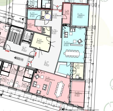 Grundriss Plegeheim 2. Obergeschoss (Teilausschnitt)