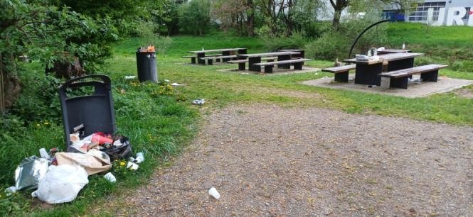 Über den gesamten Platz verteilt fanden sich Müllreste, leere Verpackungen sowie zahlreiche Pfandflaschen, die achtlos liegen gelassen wurden. Besonders ärgerlich ist dabei nicht nur die Menge des Abfalls, sondern auch die offensichtliche Gleichgültigkeit gegenüber der Natur und den Mitmenschen, die diesen Ort zur Erholung nutzen.